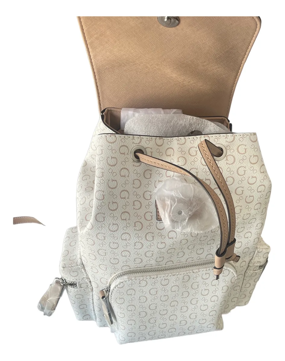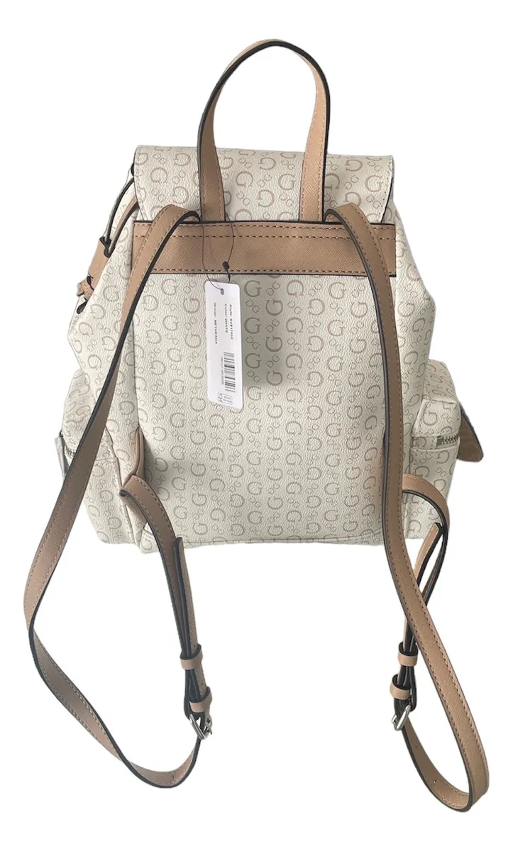 Item Code: Guess Women's Backpack Wide Strap Abernathy Color White Monogram Fabric Design