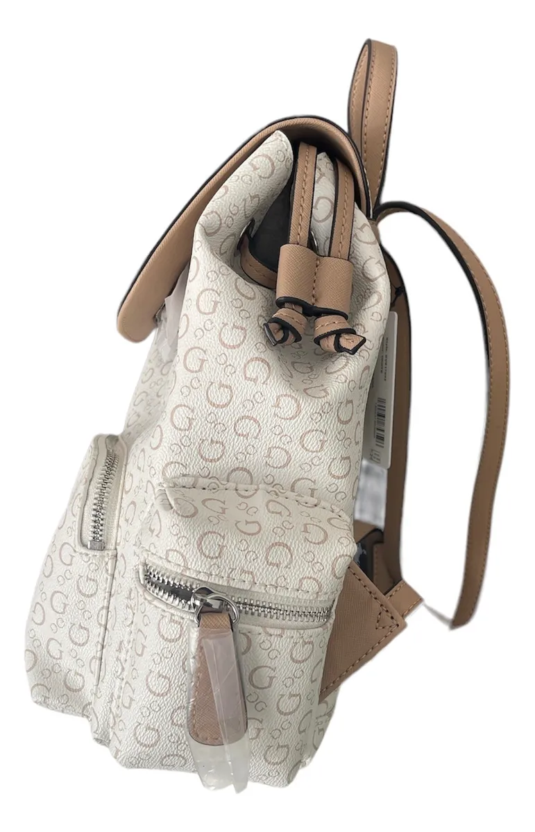 Guess Women's Backpack Wide Strap Abernathy Color White Monogram Fabric Design
